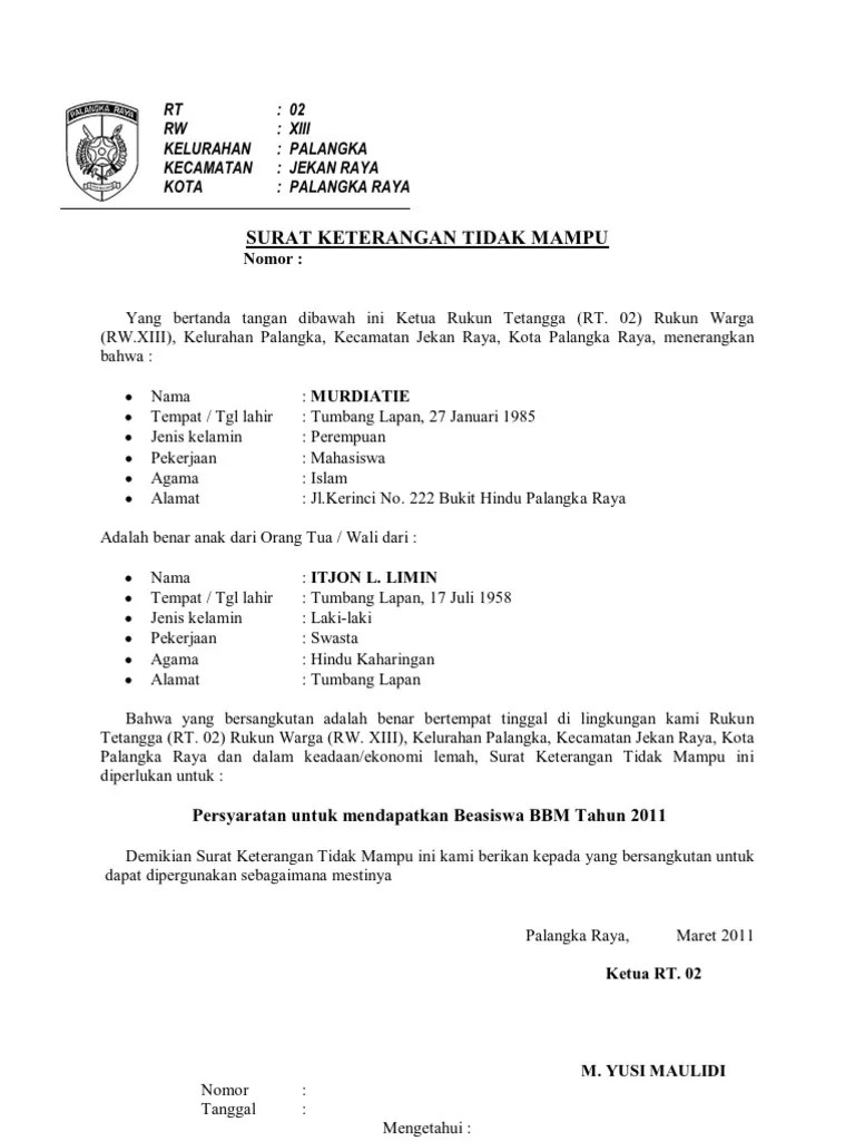 Beberapa daerah akan diminta membuat surat pernyataan tidak mampu yang diketahui rt . Surat keterangan kurang mampu dari kepala desa/rt setempat; (kks)/surat keterangan tidak mampu (sktm) dari kepala desa/lurah . Penerima kip kuliah adalah siswa sma, smk atau sederajat lulusan tahun. Langkah selanjutnya, foto dokumen pendukung keadaan ekonomi tersebut bersama dengan scan surat keterangan tidak mampu (sktm).